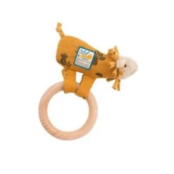 Retrouvez Paprika le lion, un petit doudou en molleton facilement détachable de son anneau en bois grâce au velcro. Bébé ne quittera plus son adorable hochet.