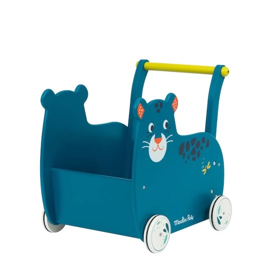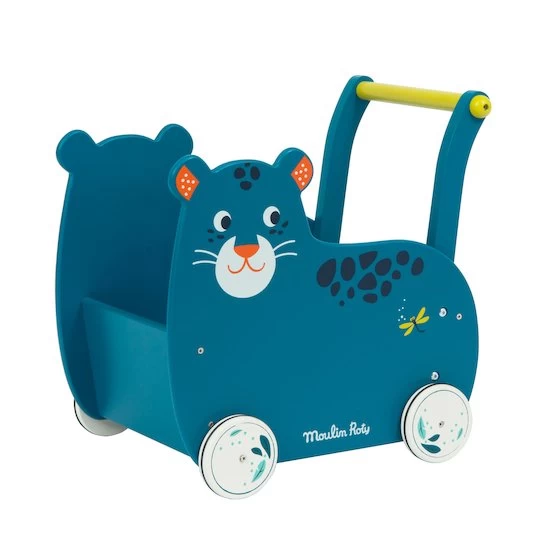 Cet adorable chariot de marche aux formes rondes est à l’effigie de Zimba la panthère bleue.