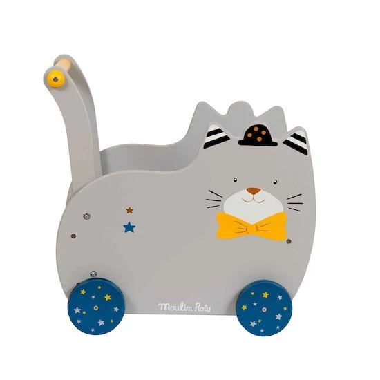 Cet adorable chariot de marche aux formes arrondies est à l’effigie de Fernand le chat dandy.