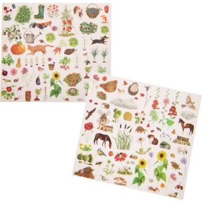– Positionner l’illustration choisie sur un des 2 décors à personnaliser. Frotter avec un crayon et regarder le transfert s’opérer comme par magie.