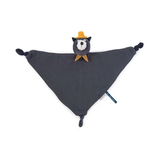 Ce doudou plat en lange de coton à l’effigie d’Alphonse le chat dandy, reprend les tons feutrés de la collection Les moustaches de Moulin Roty.