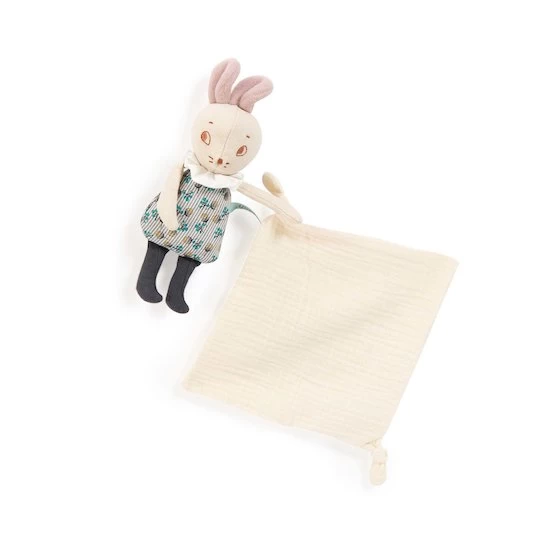 Cette adorable peluche en tissu chambray est habillée d’un tissu à fleurs très raffiné et tient un doudou en lange de coton biologique dans lequel bébé pourra se blottir.