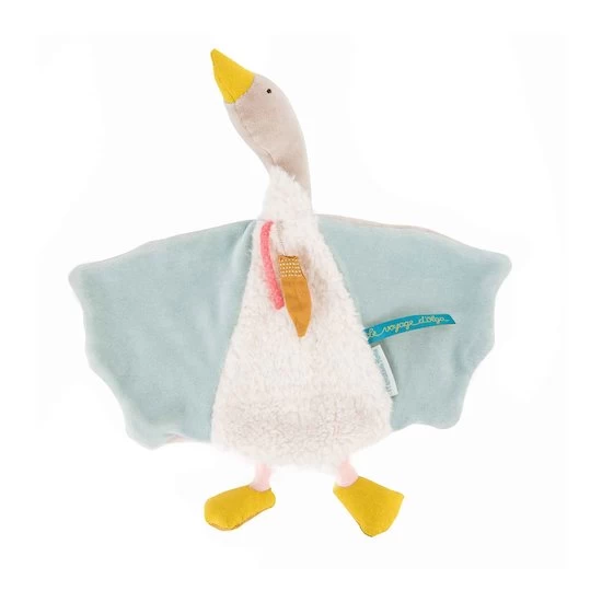 Ce doudou plat de chez Moulin Roty reprend les tons pastels de la collection Le voyage d’Olga. Il est idéal pour les tout-petits.
