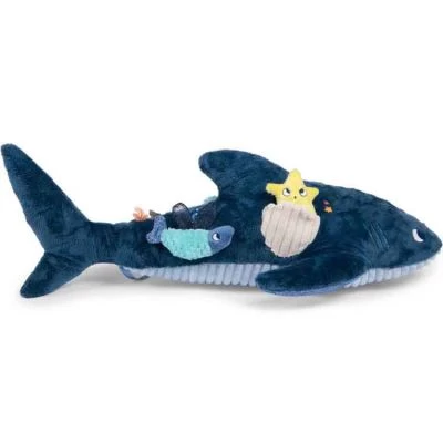 – Dos tout doux où sont cachées de petites créatures marines comme autant d’activités sensorielles à découvrir : miroir, grelot, papier crissant, étiquettes à attraper…