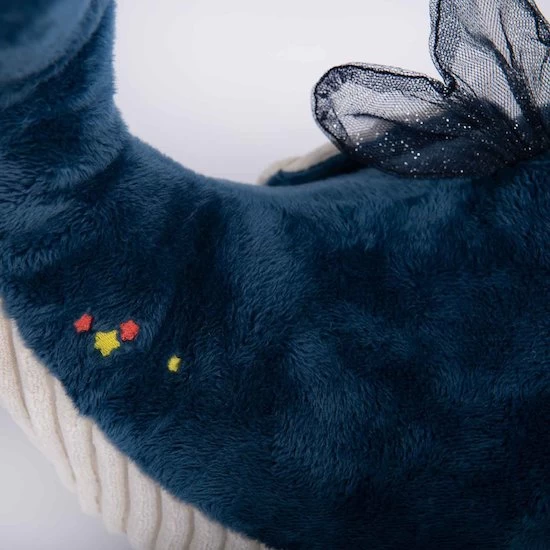 Ce gentil requin bi-matières cherche un ami pour jouer ! Sur son dos tout doux sont cachées de petites créatures marines comme autant d’activités sensorielles à découvrir : miroir, grelot, papier crissant, étiquettes à attraper…