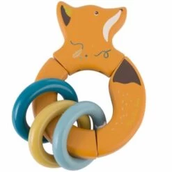 Le hochet en bois renard Chaussette Le voyage d’Olga de la marque Moulin Roty est peint avec des couleurs tendres. Composé de trois anneaux, il est idéal pour l’éveil sensoriel de bébé, pour développer sa capacité à saisir un objet.