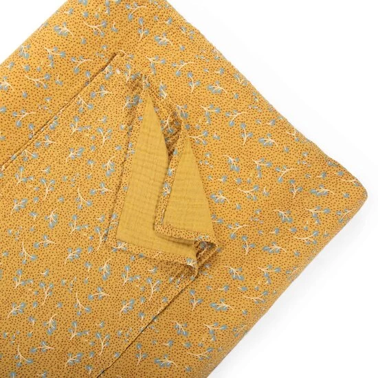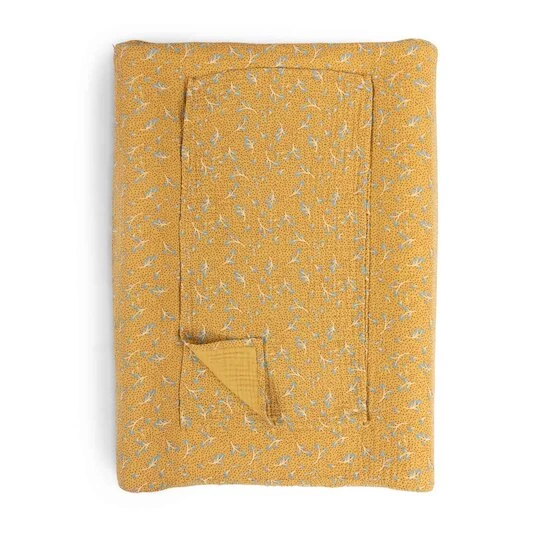 Matelas certifié OEKO-TEX® pour le change de bébé avec housse en lange, amovible et lavable, aux couleurs de la collection Trois Petits lapins.