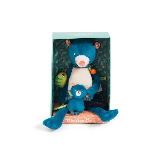 Zimba la Panthère d’activités de la collection Dans la jungle comprend un hochet, un grelot, un jouet de dentition en forme de feuille de bananier…