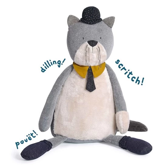 Ce doudou géant à l’effigie de Fernand le chat a été dessiné par Moulin Roty.