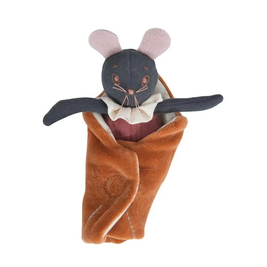 Bébé adorera câliner cette adorable souris enveloppée dans une grande feuille à scratch en velours et tissu à motif.