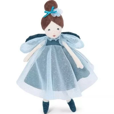 – Robe à pois rose avec tulle pailleté et ailes de fée dans le dos.