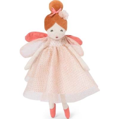 – Robe à pois rose avec tulle pailleté et ailes de fée dans le dos.