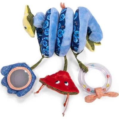 – Plusieurs activités : miroir, anneau à billes, étiquettes à saisir ou mâchouiller.