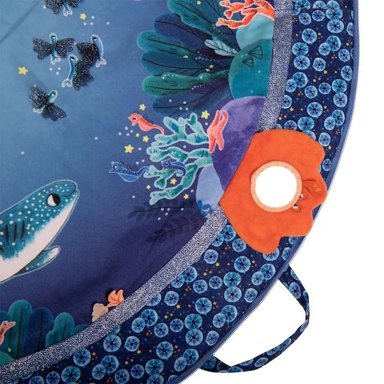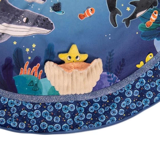 Ce coquillage a quitté son rocher avec plein d’activités colorées pour jouer avec bébé : miroir, étiquettes et rubans à attraper, pouët, papier crissant… Il s’accroche partout et se referme par un scratch dont le bruit plait beaucoup aux tout-petits.